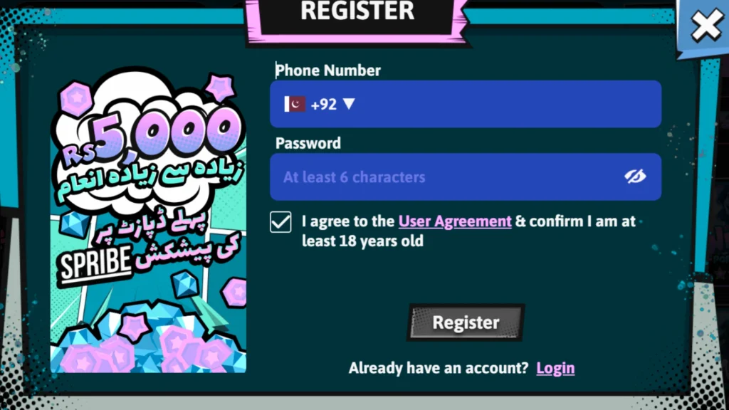 Download the app, click register, verify your number, and start playing.