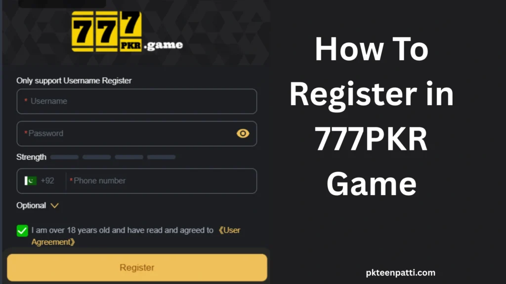 Simply tap on 777PKR Register, fill in your details, and verify your account.