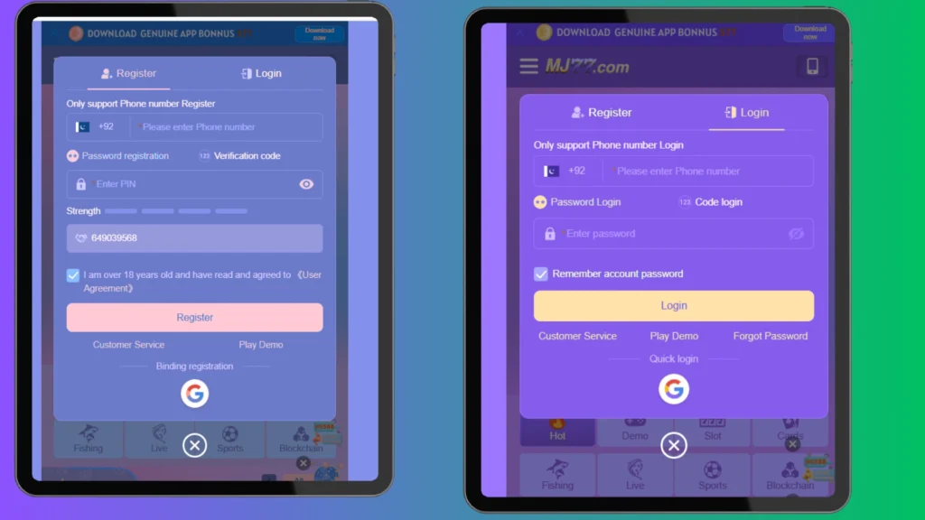 4. Can I register for the new casino app MJ77 game in Pakistan?