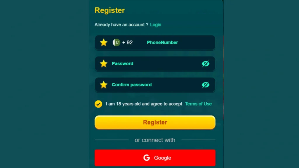 It is a multi-category casino, slots, cards, and sports betting app in Pakistan